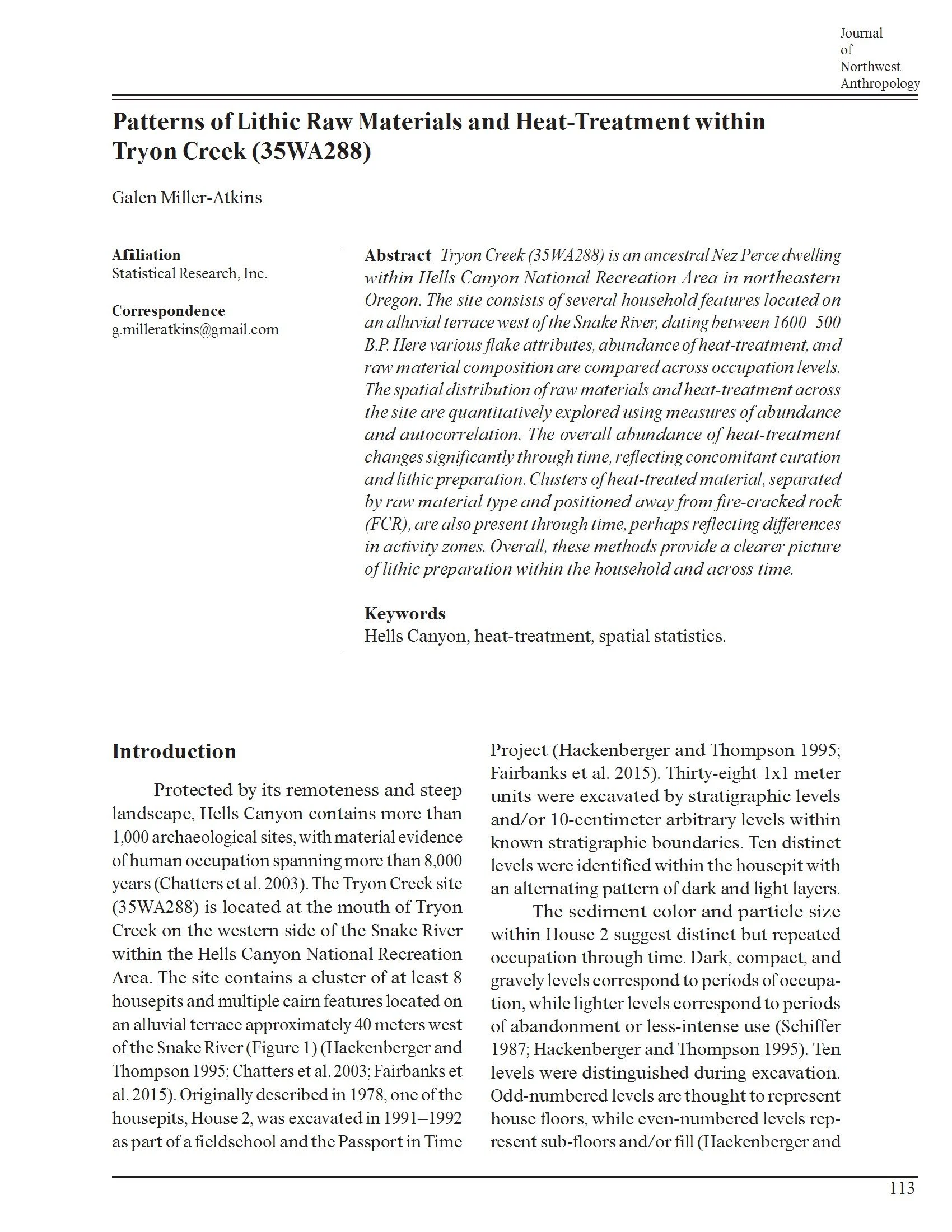 2023 Patterns of Lithic Raw Materials and Heat-Treatment within Tryon Creek (35WA288). Journal of Northwest Anthropology. 57(1):113-127.